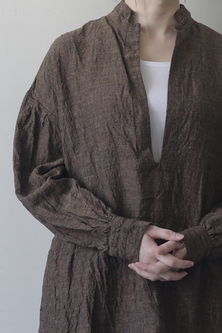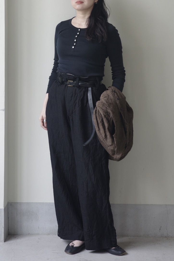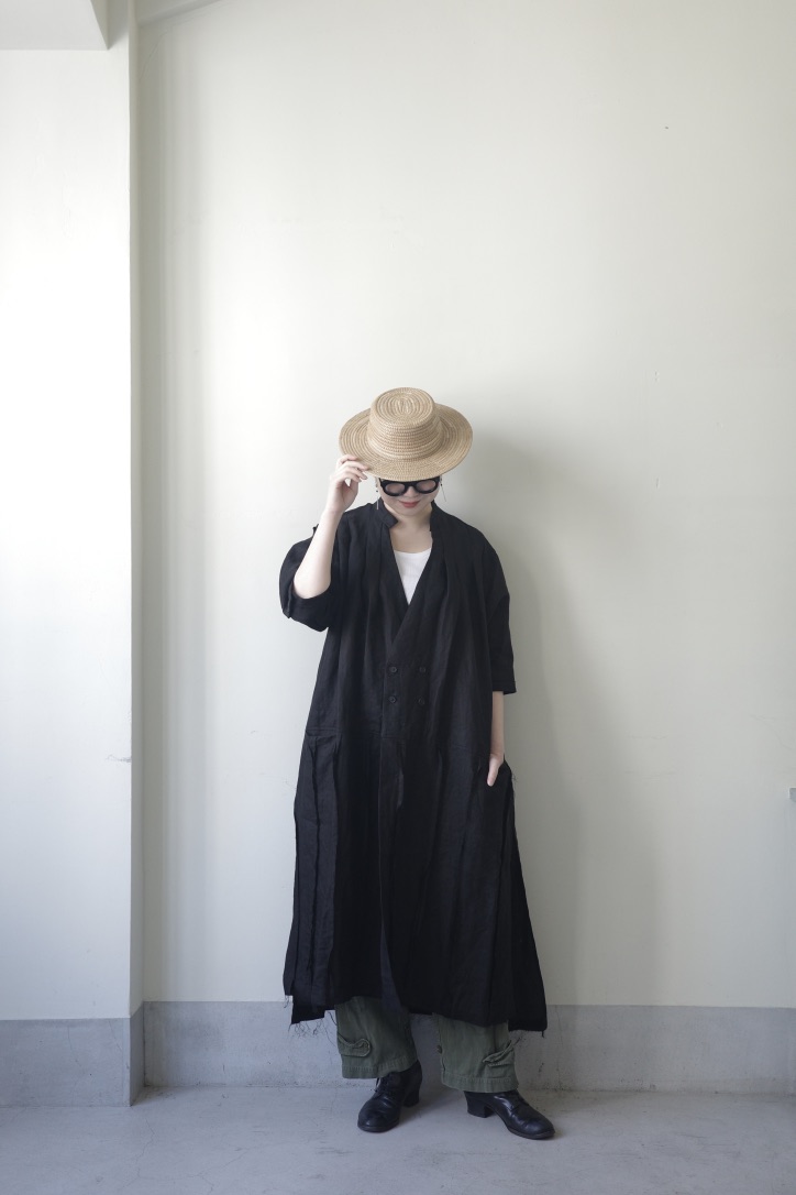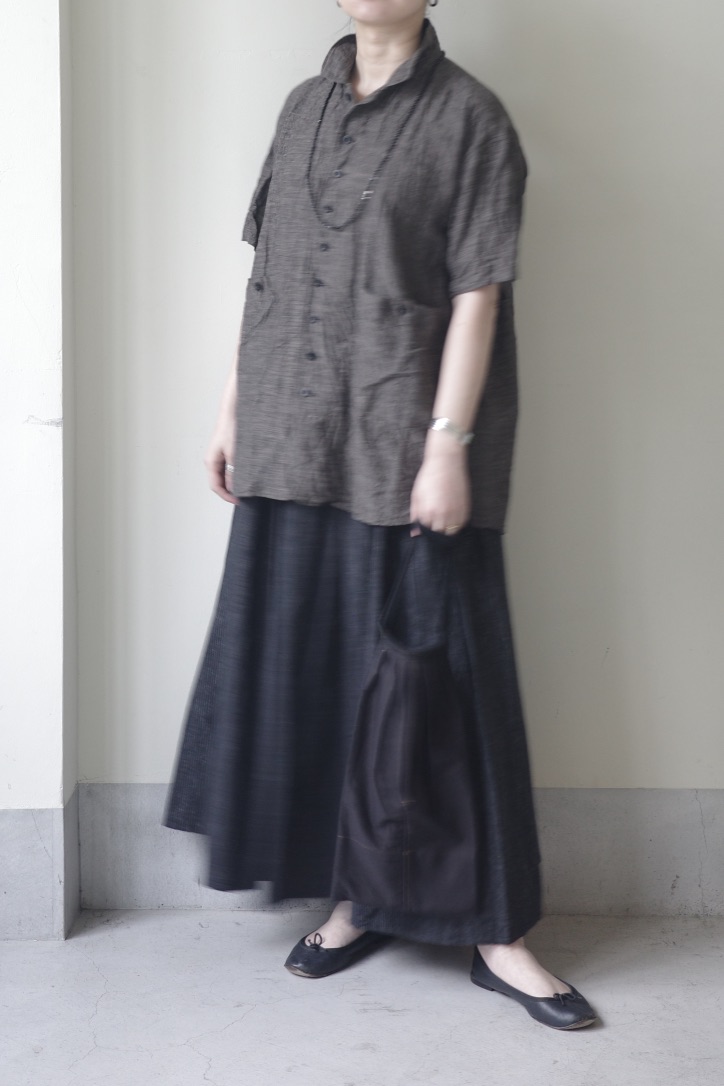深い色調のストライプリネン、ハリと艶が美しい漆黒、ヴィンテージのようなシャンブレーや、光をやわらかく通す薄手の生地…。それぞれに異なる表情がありながら、どこか共通したKLASICAらしい空気を放っています。